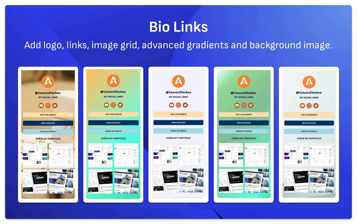 Make your Bio Link uniquely yours! Choose from a variety of templates, colors, and fonts to create a landing page that reflects your brand or personality.